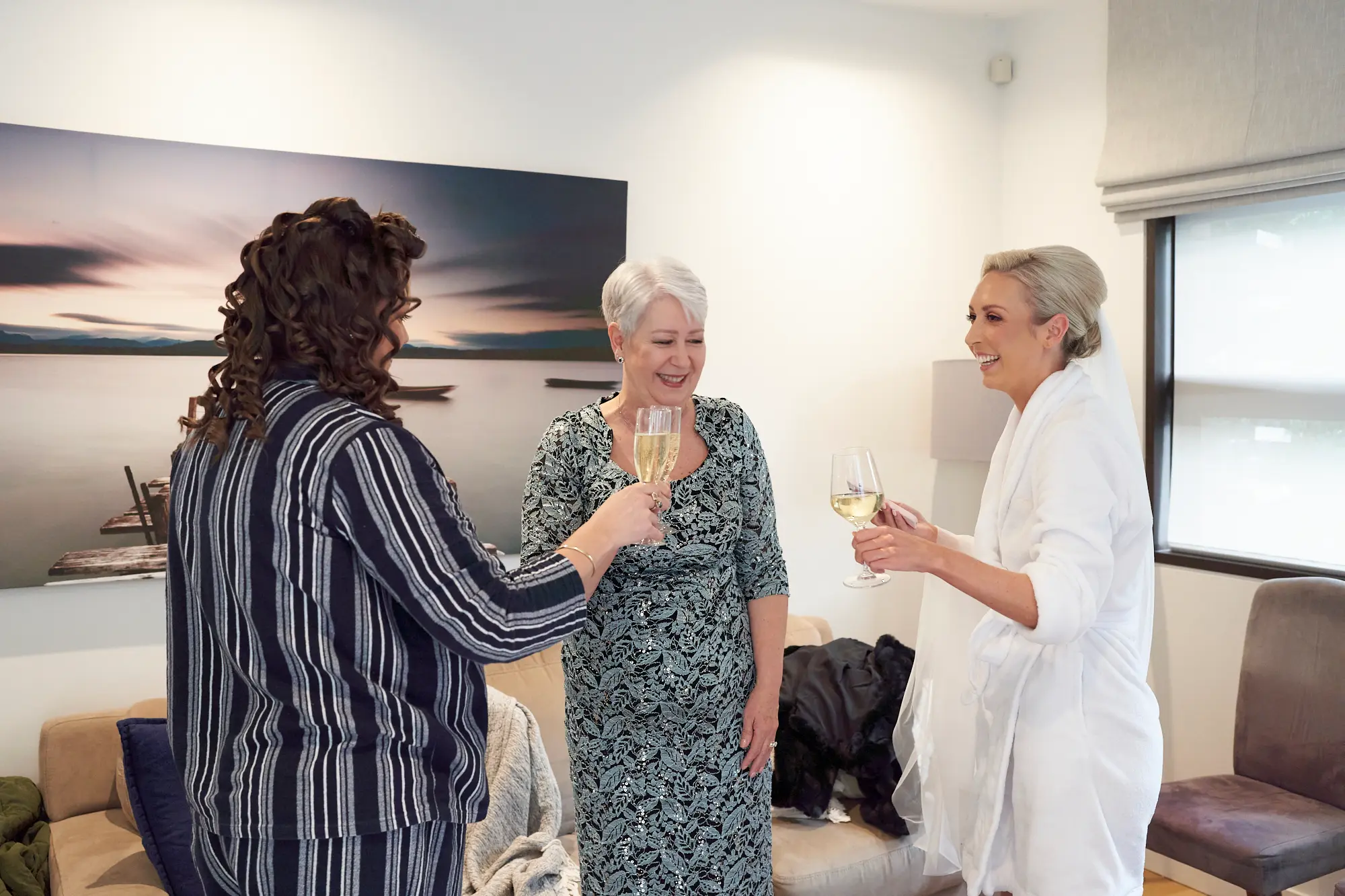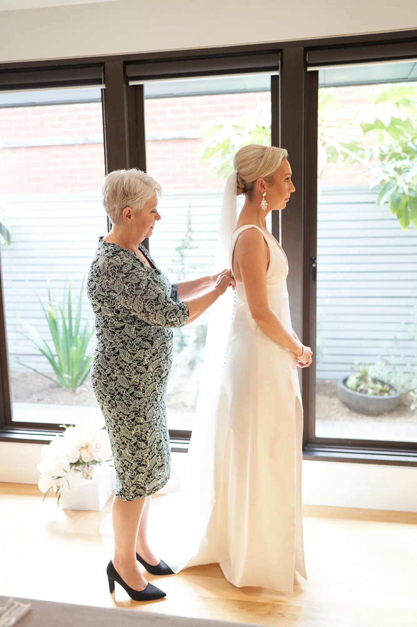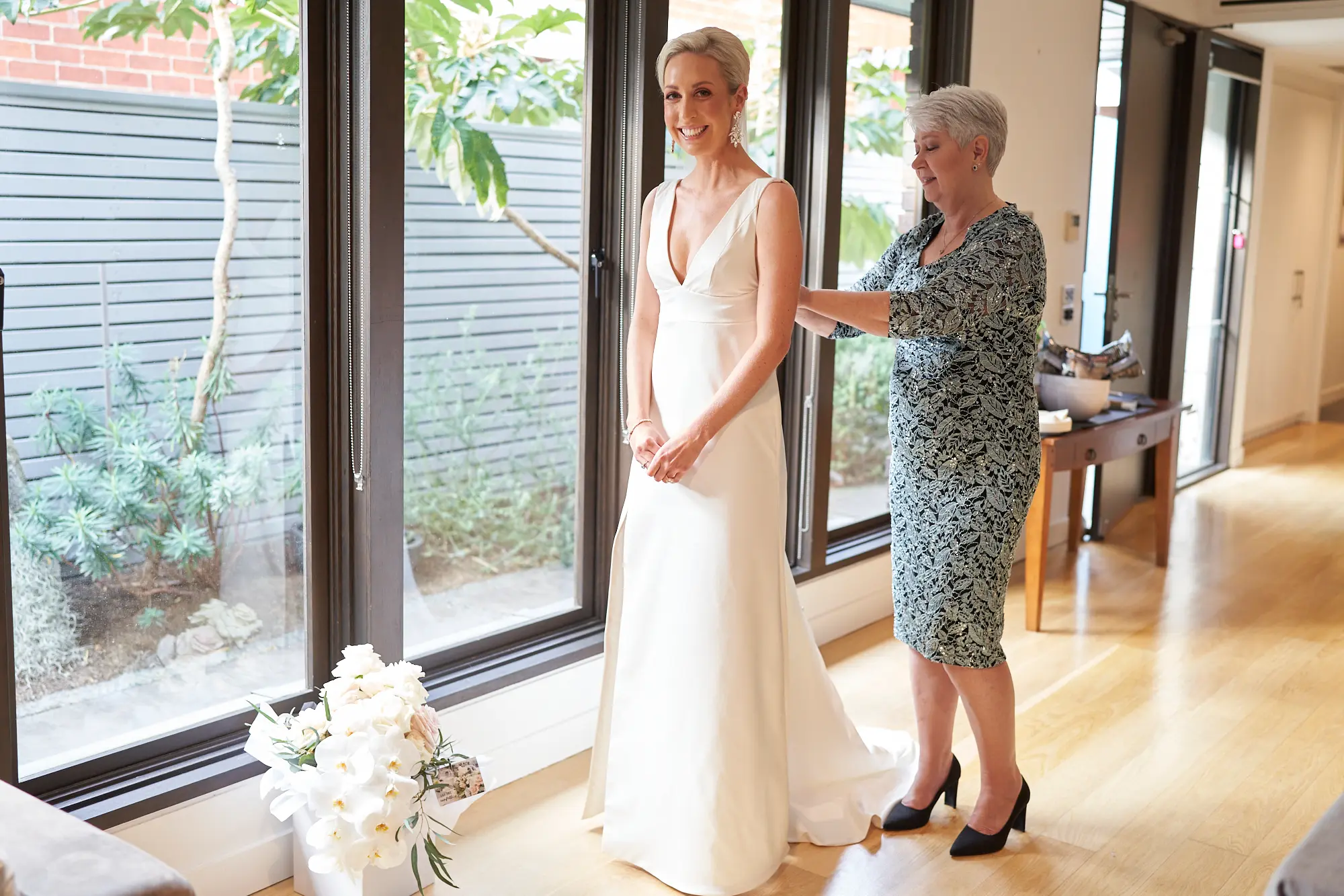 The bride’s morning began with quiet elegance and thoughtful detail. From the moment she gently held her wedding dress to the final touches of makeup, each moment unfolded naturally in soft light. Her beautiful white orchid bouquet, delicate jewellery, rings, shoes, and bracelet were carefully captured as part of the story. Surrounded by family, the atmosphere was calm and joyful, with champagne shared and laughter filling the room. One of the most meaningful moments came as her mother lovingly zipped and adjusted the back of her wedding dress — a quiet exchange filled with emotion. These moments weren’t staged, but deeply felt, creating timeless photographs rooted in connection and love.