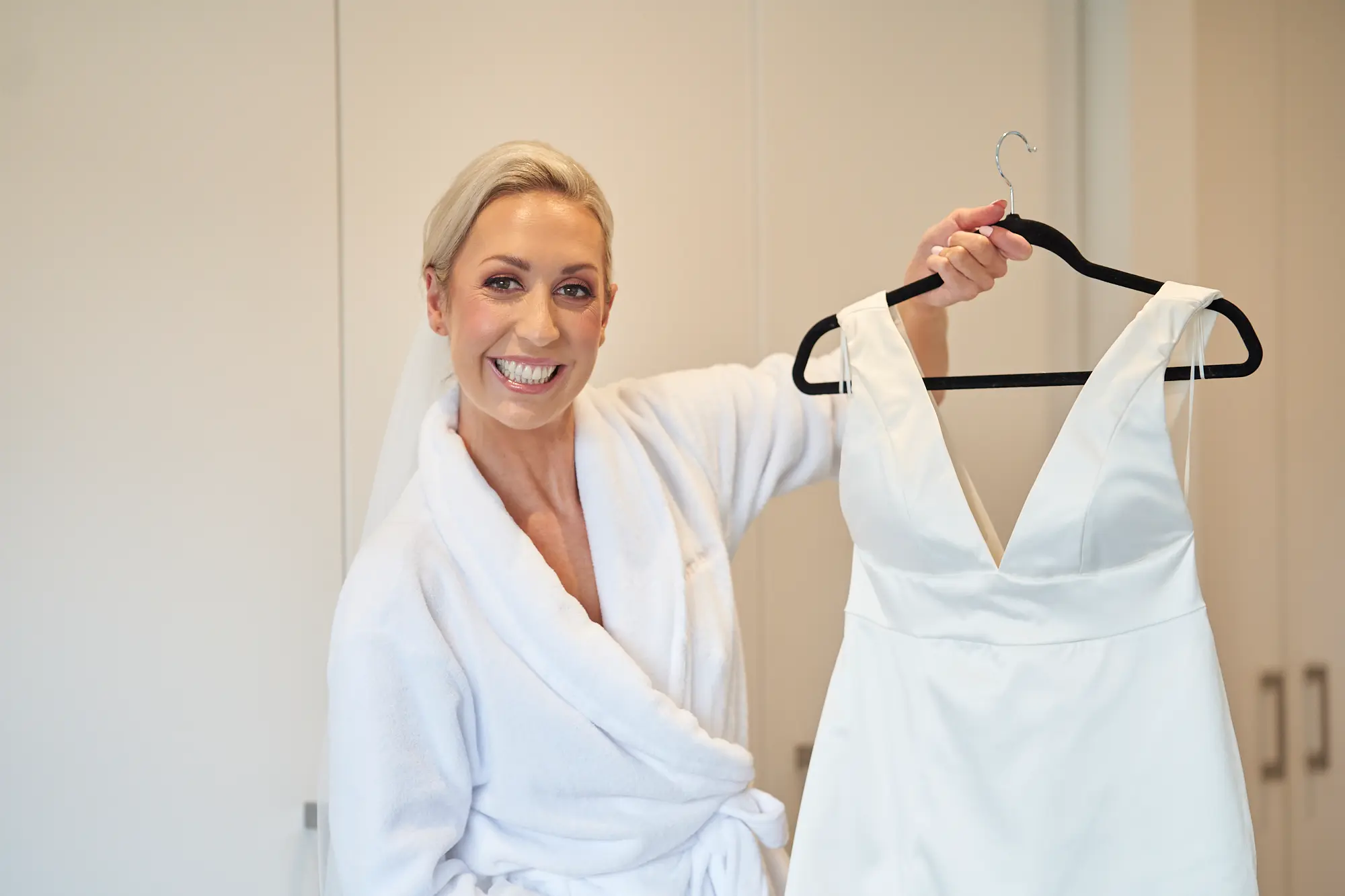 The morning began with quiet details: her wedding dress, a soft white bouquet, and gentle light filling the space. Surrounded by family, she shared relaxed moments, laughter, and champagne as anticipation slowly built. There was no rush, only a sense of togetherness and excitement for what was ahead.