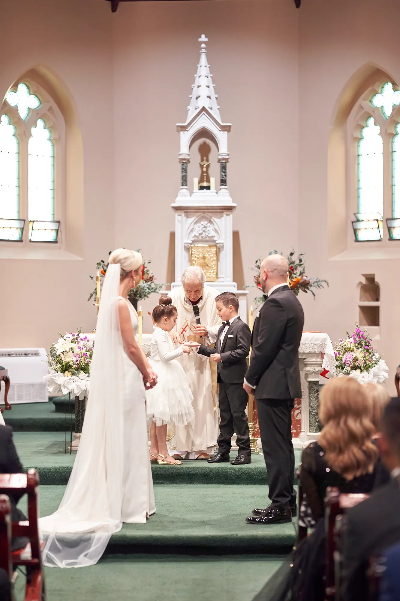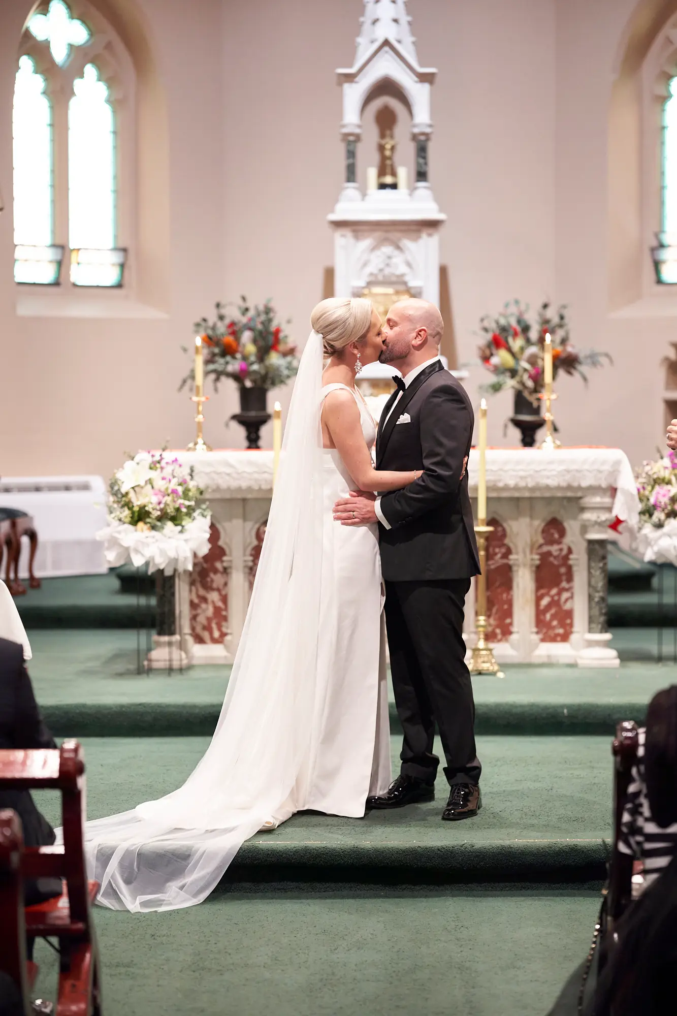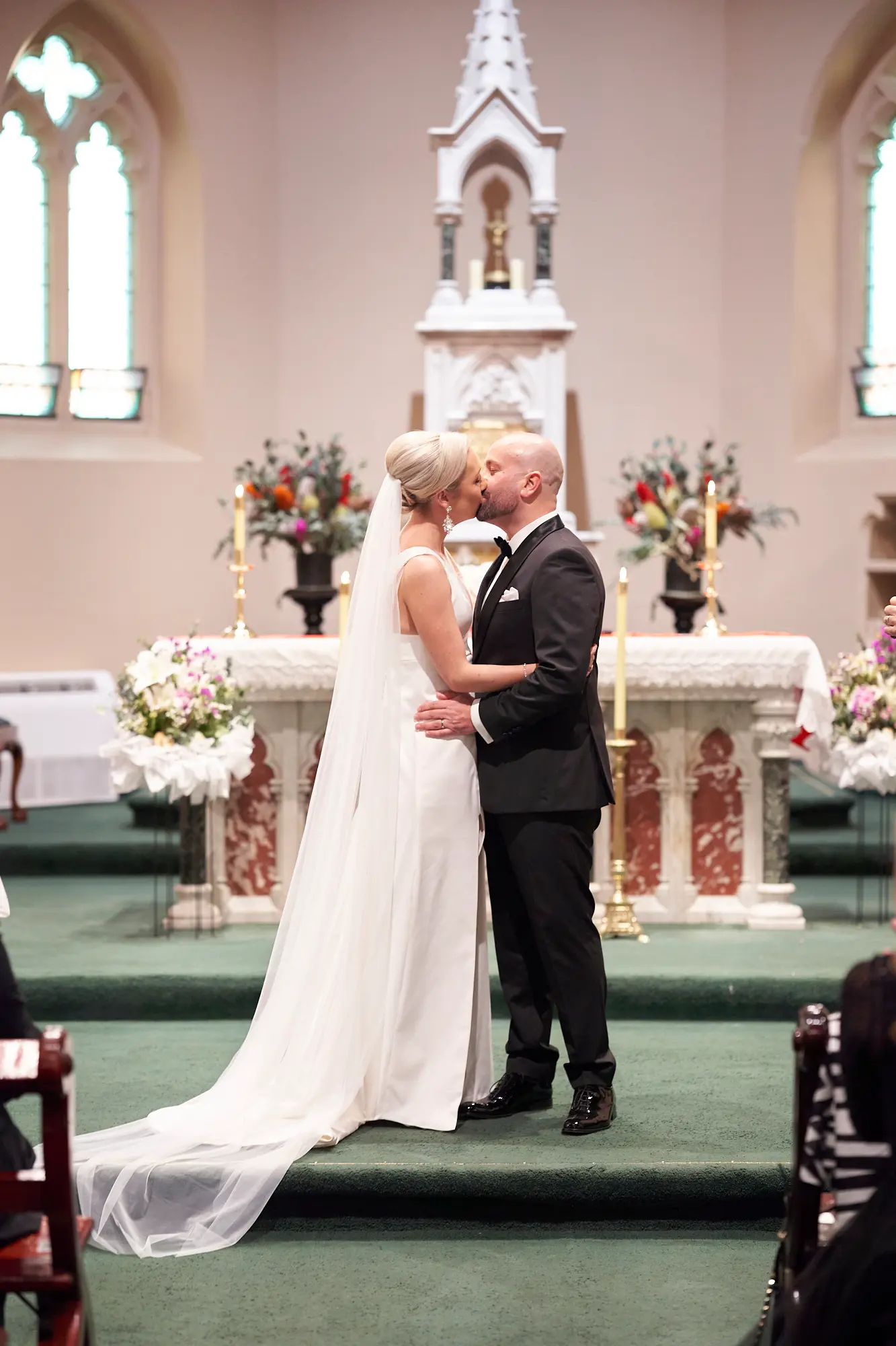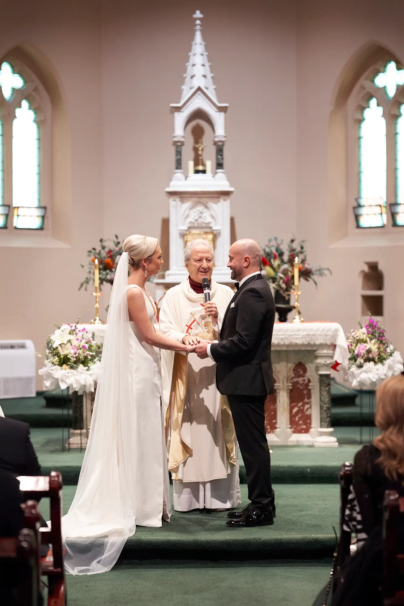 Stepping inside, the rich architectural details, soaring arches, and stained glass windows created a sense of timeless elegance. Soft, filtered light gently filled the space, setting a calm and emotional atmosphere as guests gathered.