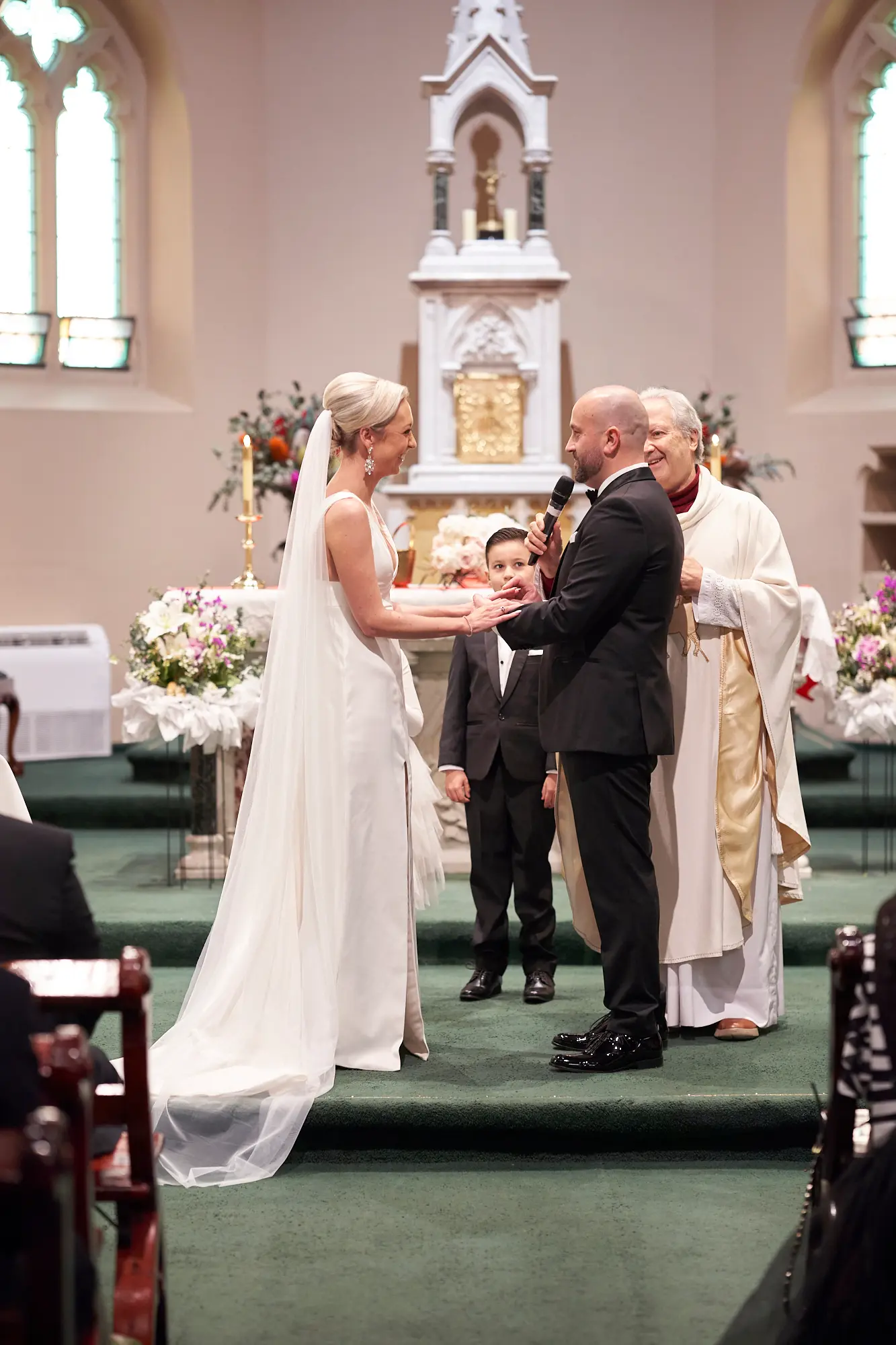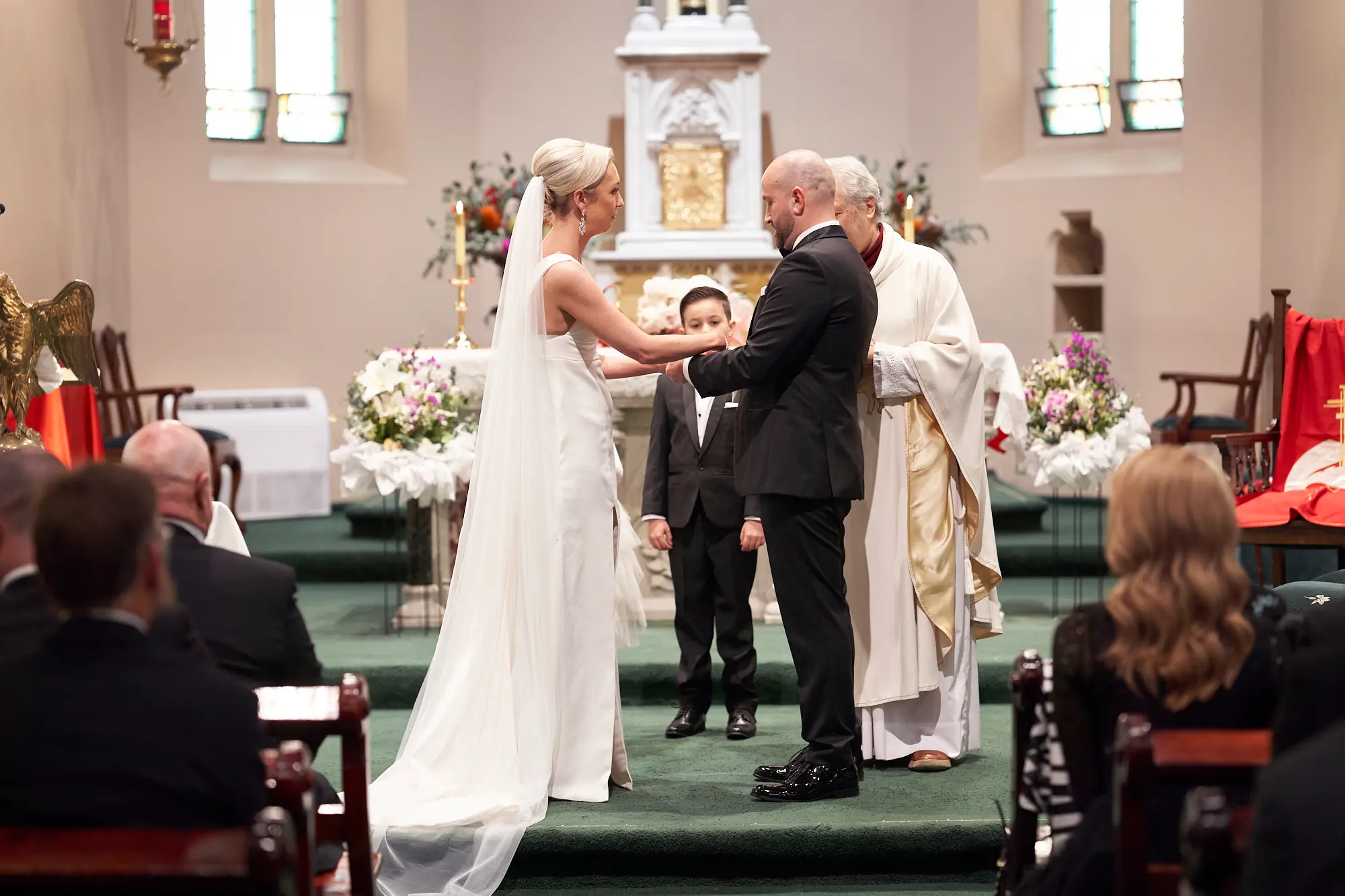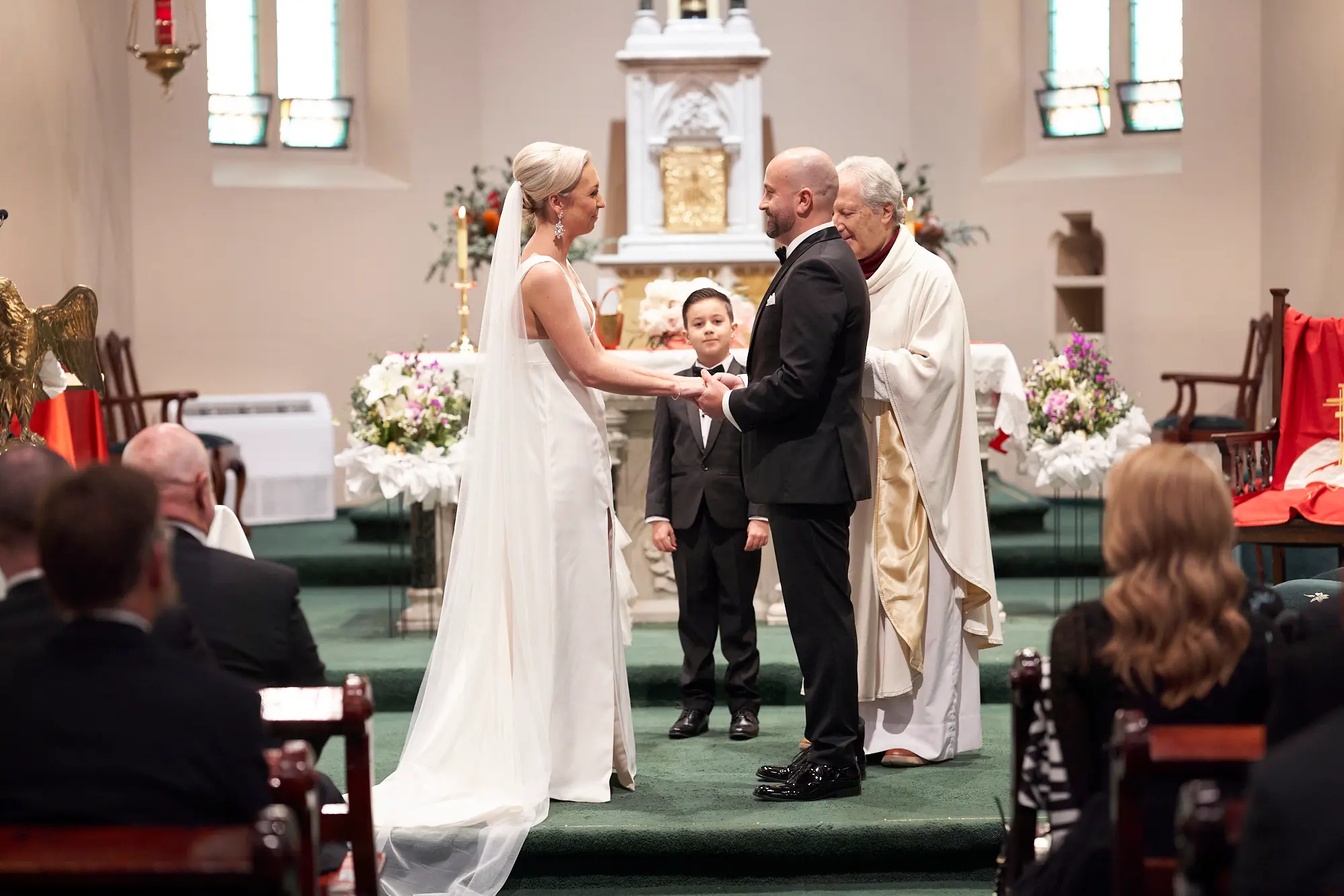 Stepping inside, the rich architectural details, soaring arches, and stained glass windows created a sense of timeless elegance. Soft, filtered light gently filled the space, setting a calm and emotional atmosphere as guests gathered.