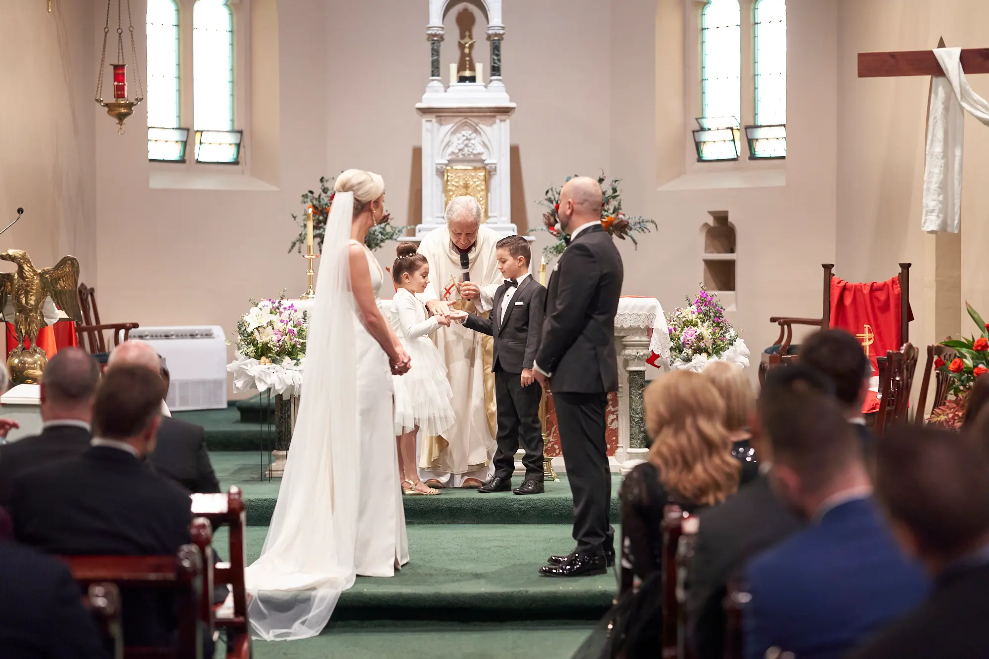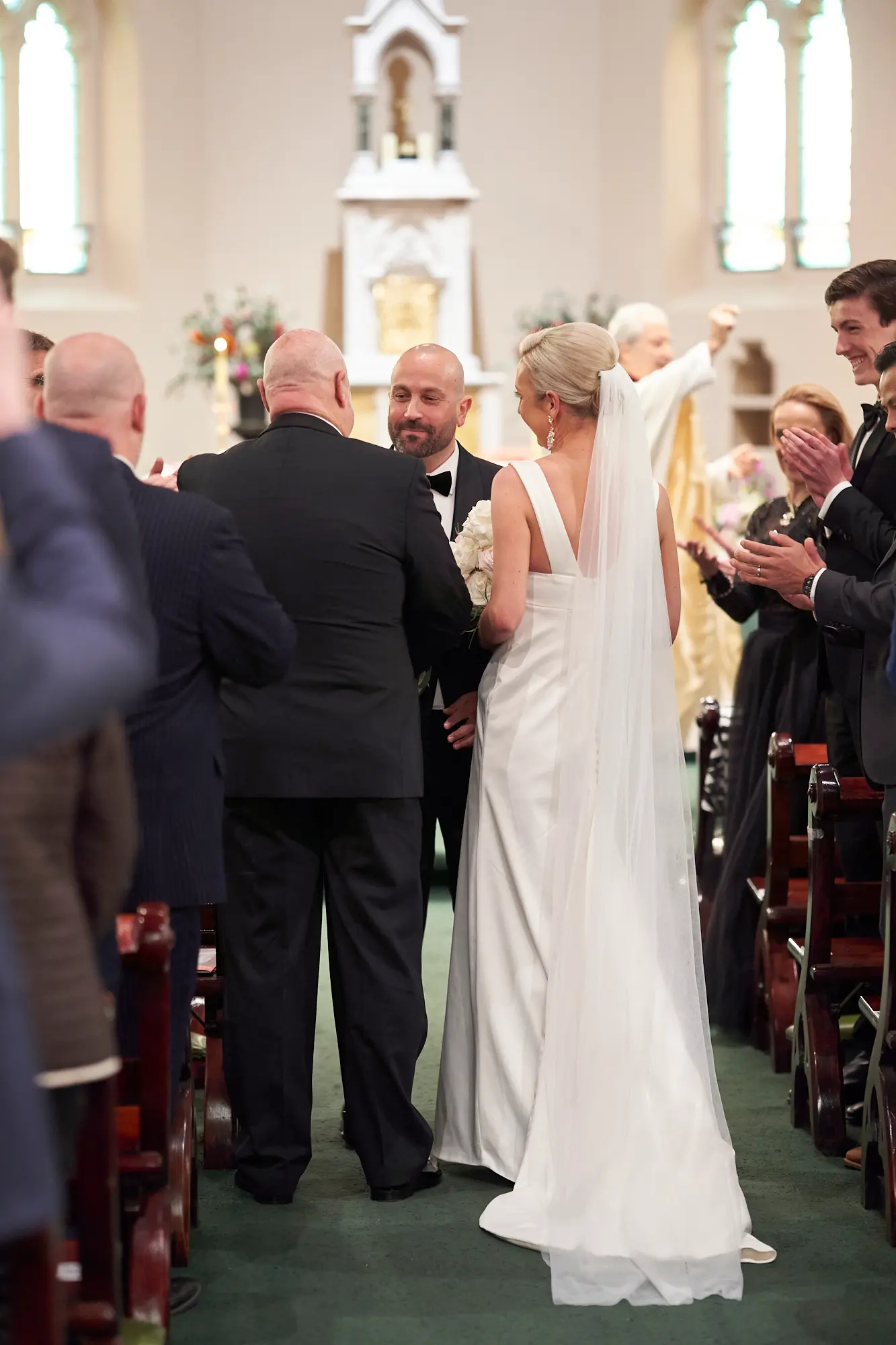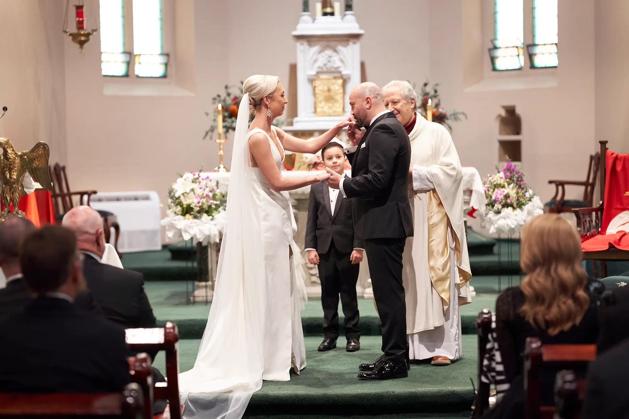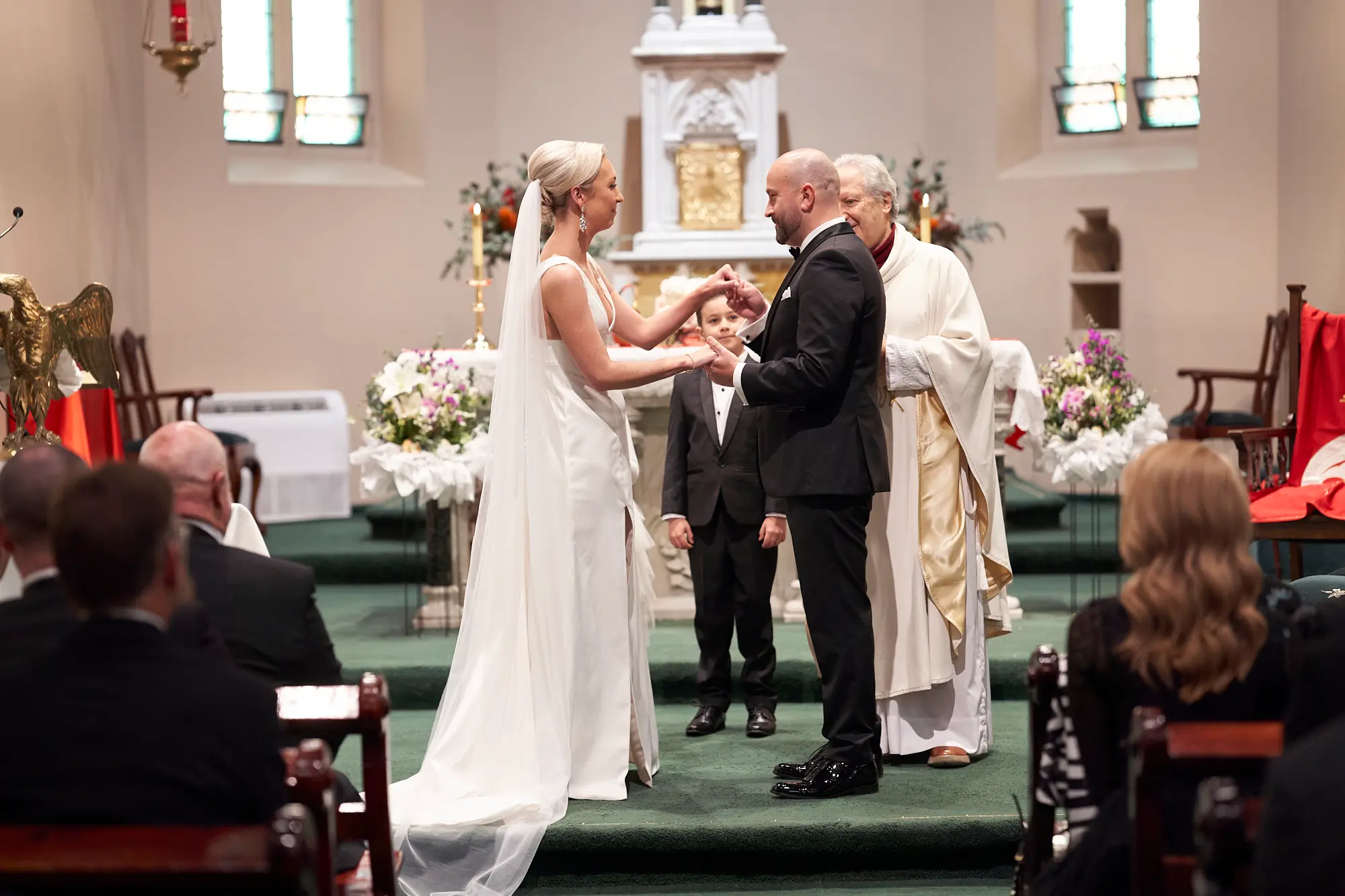 Stepping inside, the rich architectural details, soaring arches, and stained glass windows created a sense of timeless elegance. Soft, filtered light gently filled the space, setting a calm and emotional atmosphere as guests gathered.