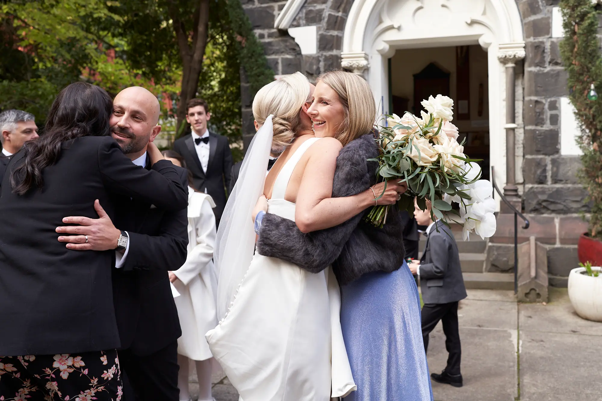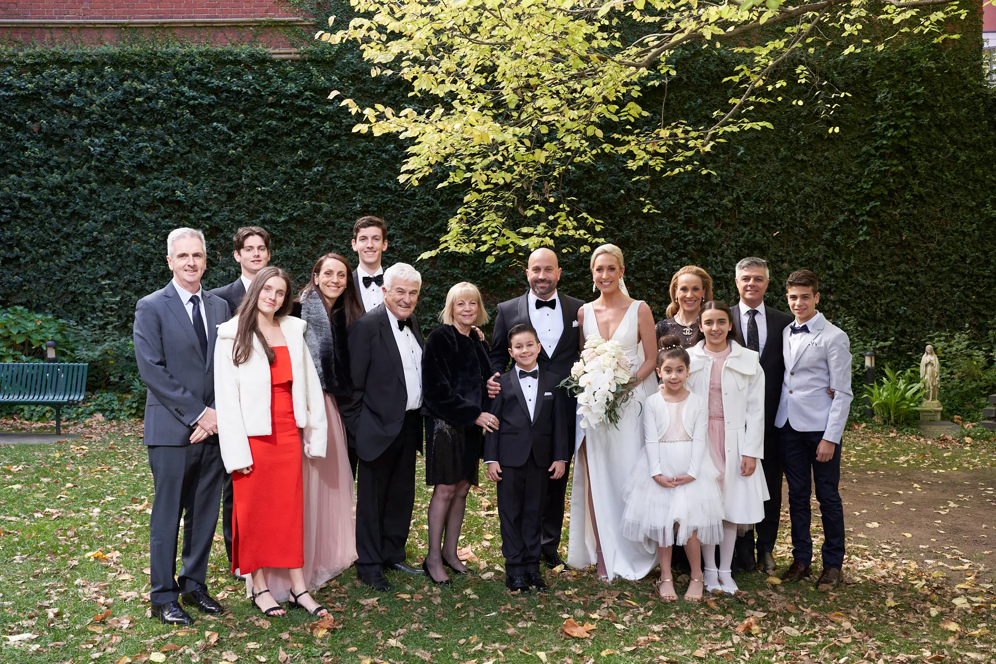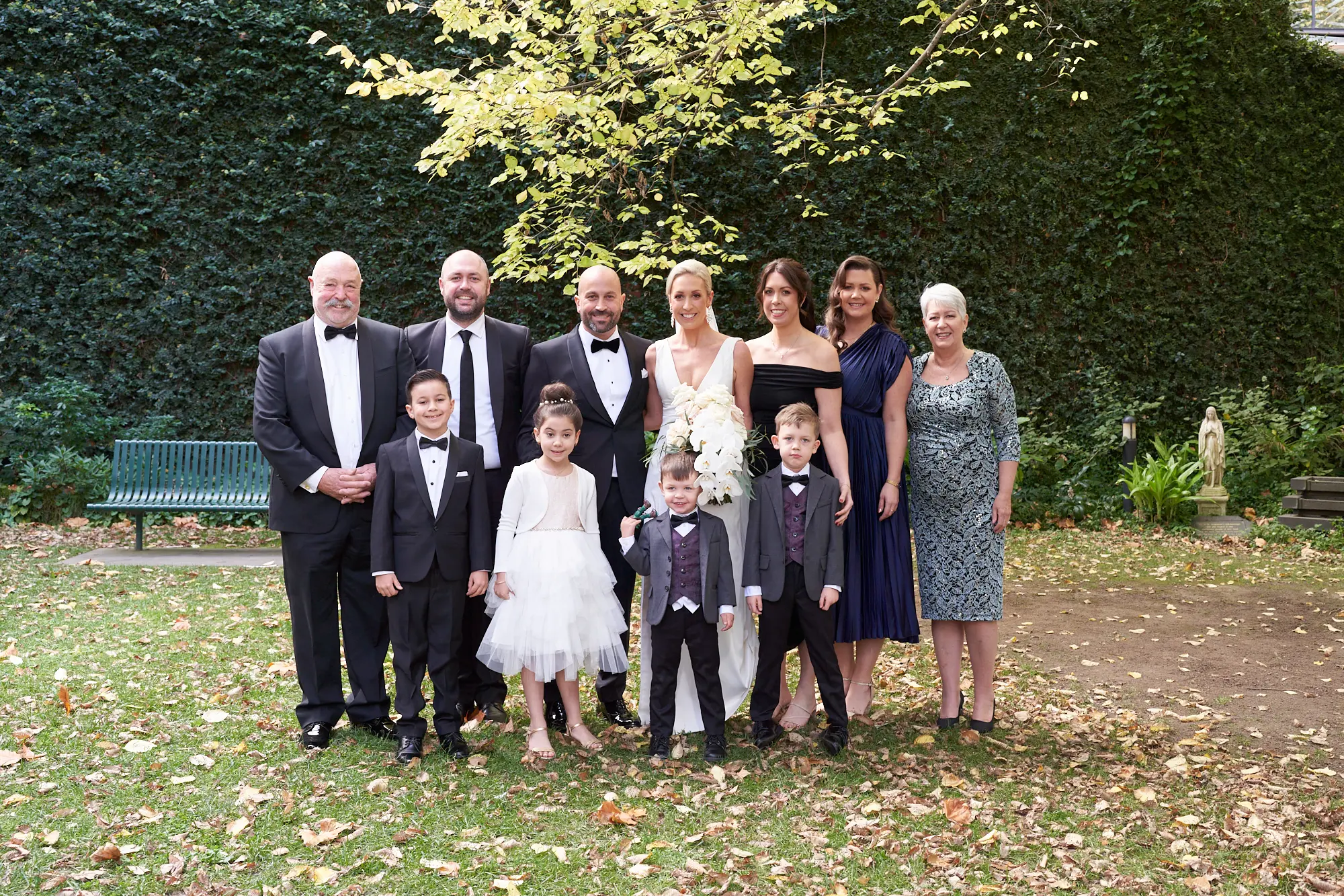 At Adrian and Laura’s wedding, these moments unfolded naturally, beginning with portraits alongside their children, followed by immediate and extended family. The church garden provided a beautiful and relaxed backdrop, allowing everyone to feel comfortable and present.