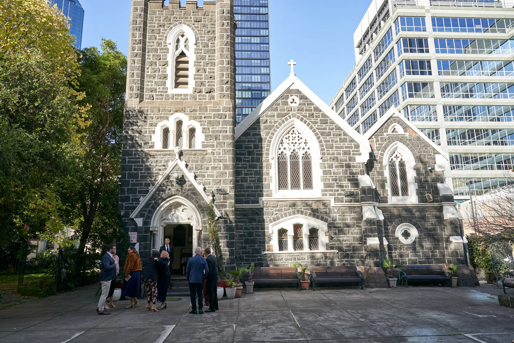 Adrian and Laura’s wedding ceremony took place at St Augustine Parish Church on Bourke Street, one of Melbourne’s most historic Catholic churches.