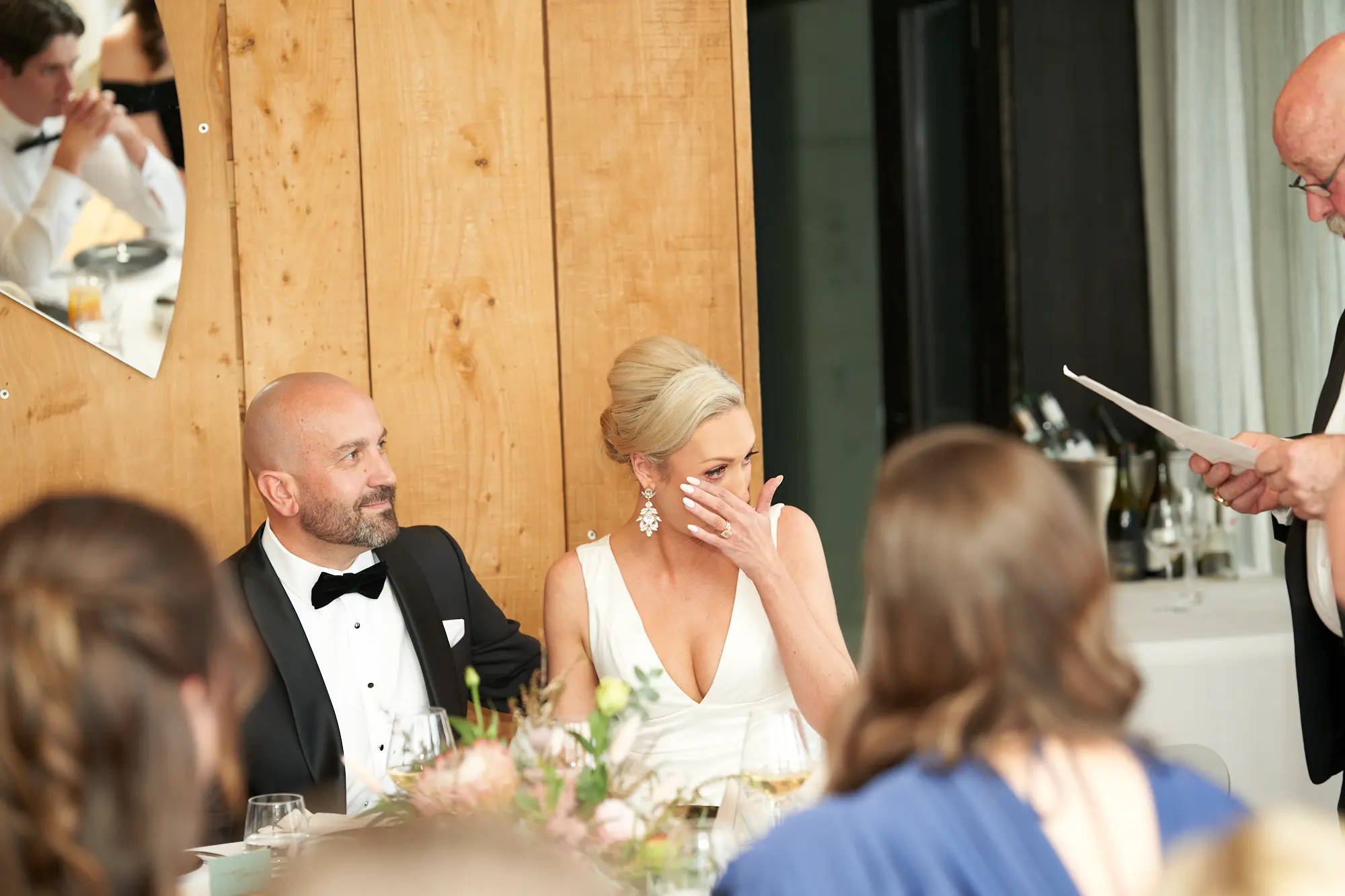 The reception is where emotion and celebration truly meet. As guests take their seats, the atmosphere fills with warmth and anticipation. Heartfelt speeches unfold, revealing genuine smiles, joyful laughter, and quiet tears that speak volumes. Toasts echo across the room, capturing the happiness shared by everyone present. Among these moments are subtle gestures — the bride’s emotional smile, the groom’s proud expression, and a loving kiss shared after a speech. Together, these moments create a reception story that feels deeply personal, joyful, and timeless, preserving the true spirit of the celebration as it naturally unfolds.
