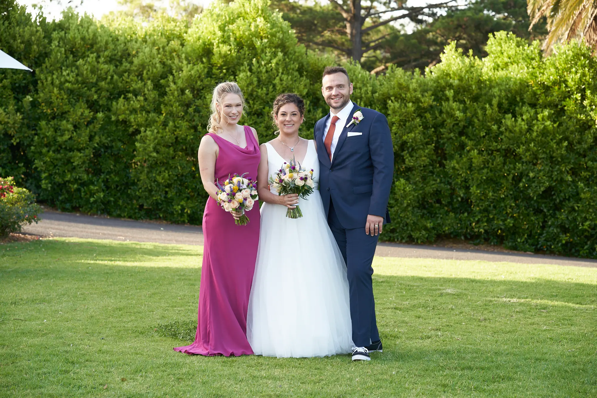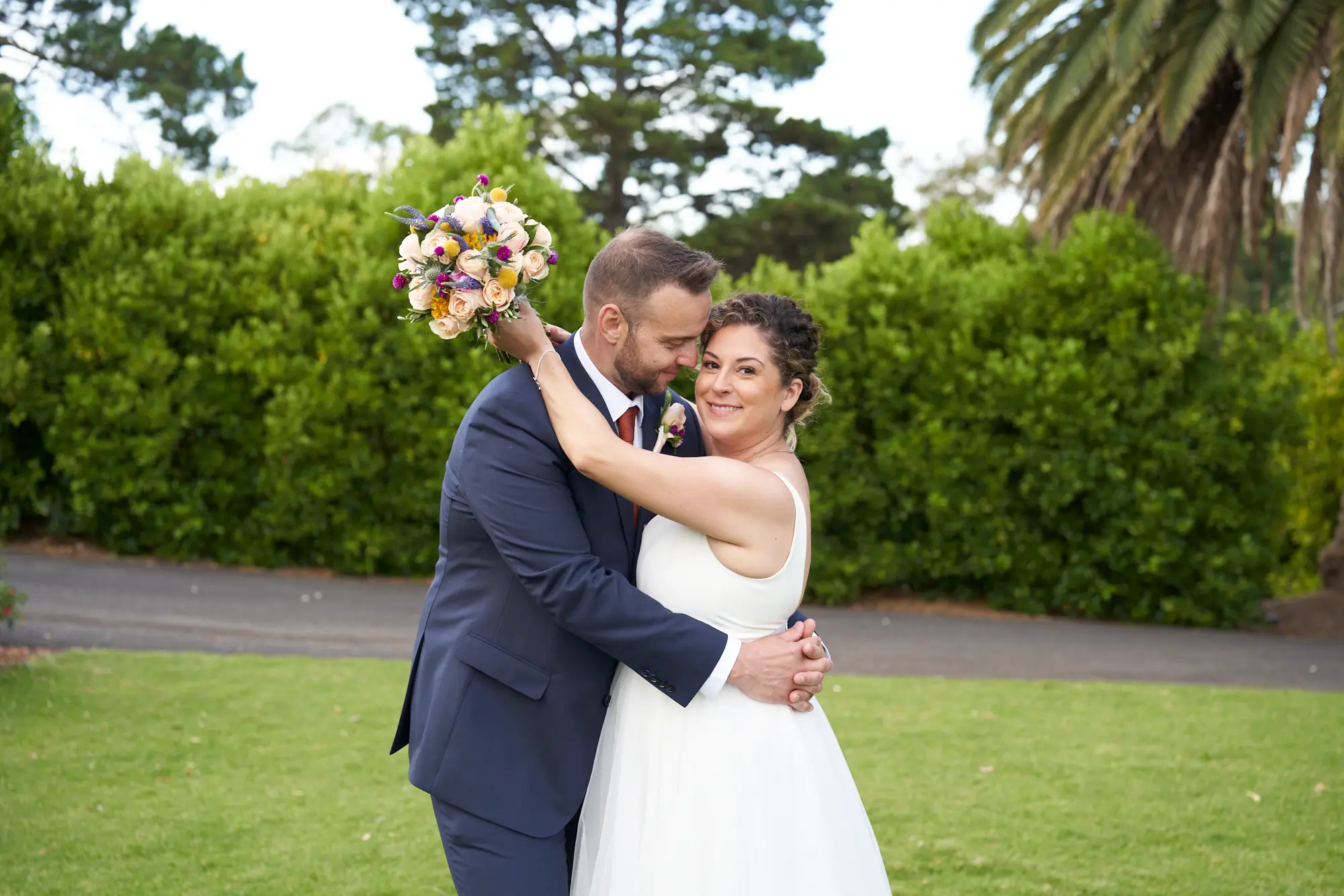 With around 40 guests, the day felt relaxed, meaningful, and deeply personal. Bathed in warm sunshine, their ceremony took place among Farm Vigano’s manicured gardens and rose-lined lawns, offering breathtaking views across the Plenty Valley Gorge. As a Melbourne wedding photographer, Farm Vigano is always a joy to photograph — its historic Italian charm, rolling orchards, and panoramic landscapes create a timeless backdrop for wedding portraits. Following the ceremony, Allison and Christian enjoyed an intimate reception in the Gardens Room, where floor-to-ceiling views of the valley and river below set the scene for a heartfelt and unforgettable celebration.