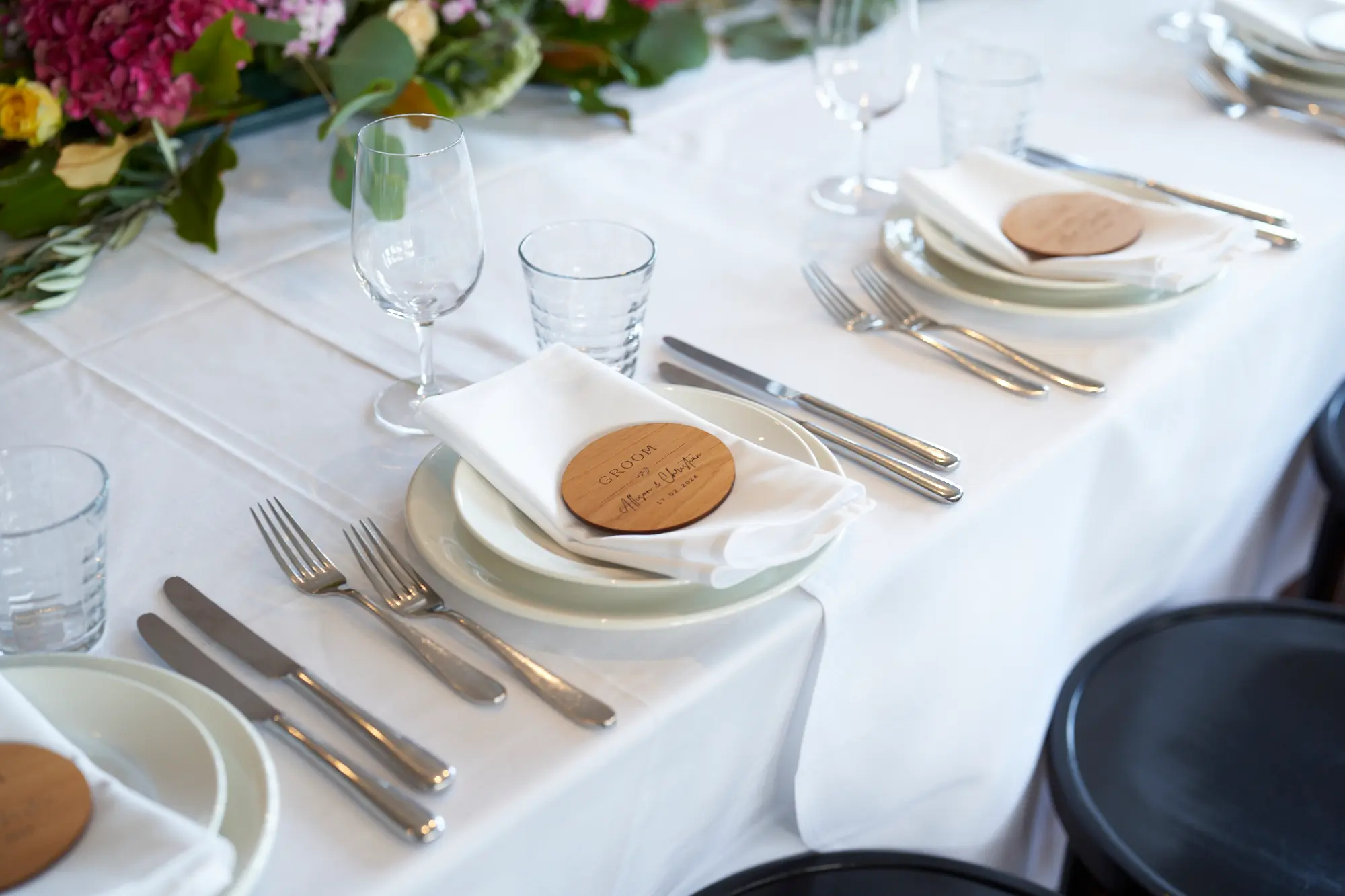 Allison and Christian’s wedding reception took place in the Gardens Room at Farm Vigano, an intimate space filled with natural light and scenic views.