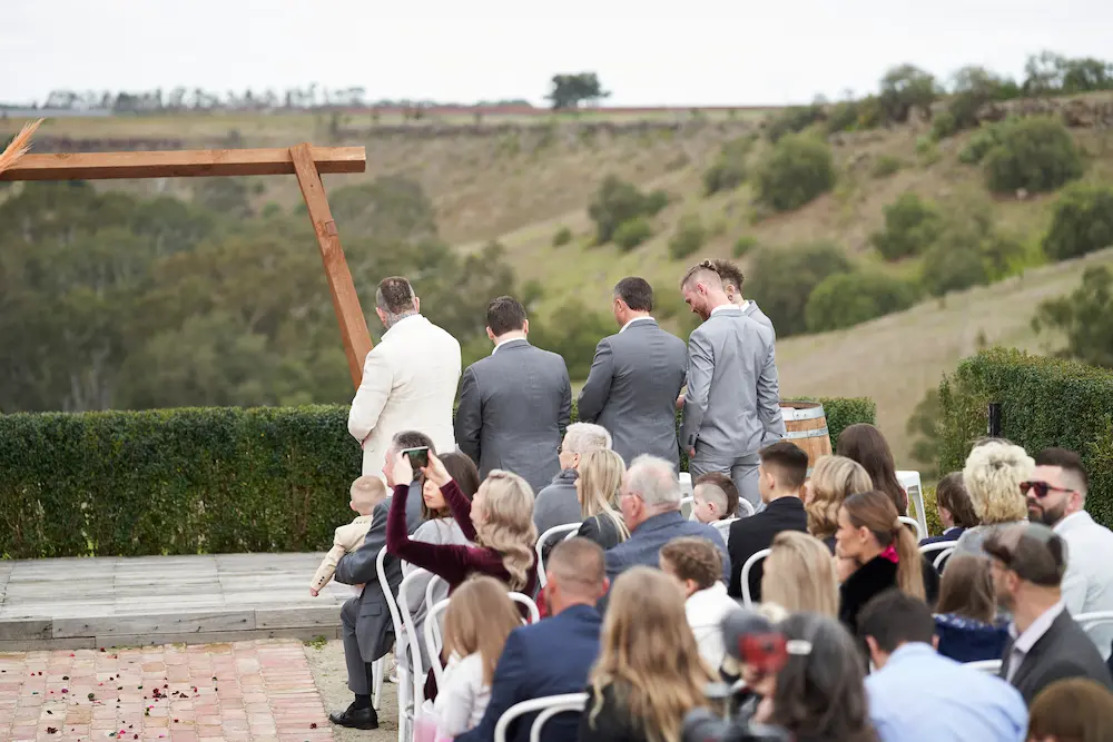 The groom stood patiently at the front, anticipation written across his face as he waited for his bride to arrive. Blending the sweeping landscapes with natural, unposed interactions is what makes wedding photography in Melbourne so special — it allows every detail, from scenery to emotion, to be remembered for years to come.