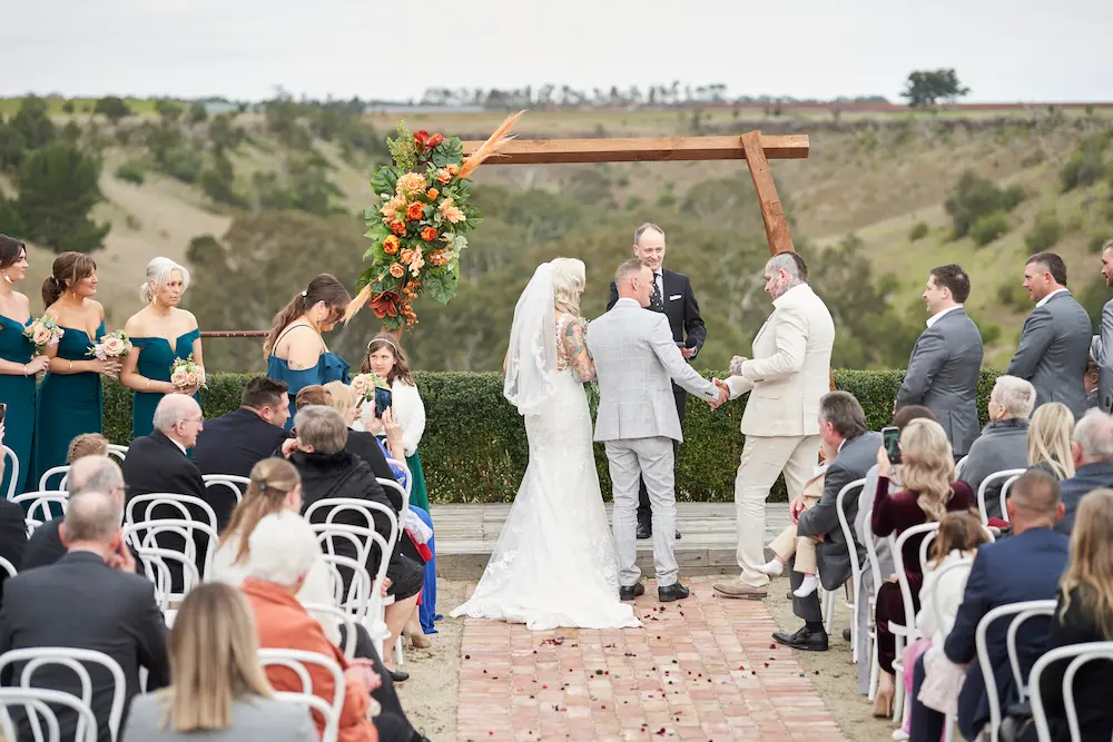 The wedding ceremony at Warrawong Estate was a beautiful blend of heartfelt emotion and breathtaking scenery.