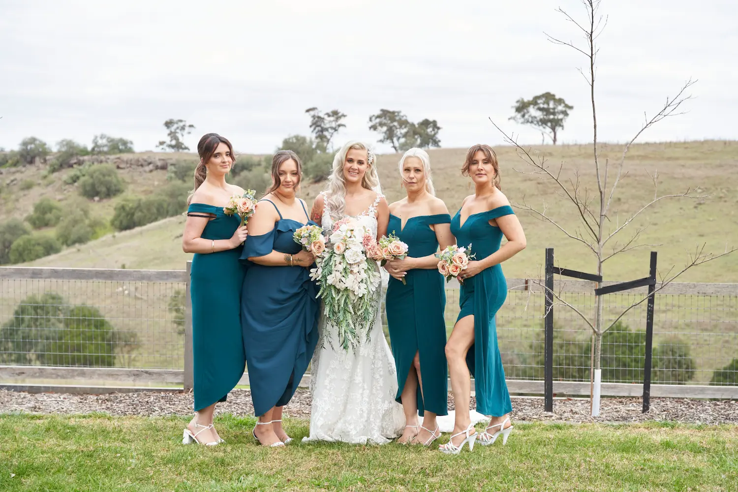 From timeless poses on the hilltop to candid laughter by the rustic Woolshed — bridesmaids’ portraits radiating joy and beauty.
