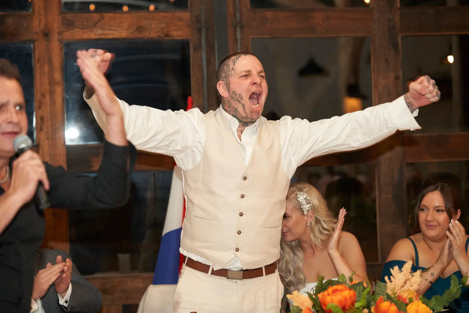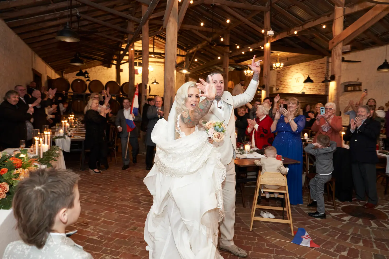 The reception truly came alive as the bridal party made their entrance, filling the room with cheers, laughter, and heartfelt excitement.