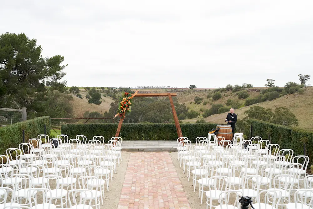 Arriving at Warrawong Estate, I began by capturing the stunning ceremony setup overlooking the rolling valley below.