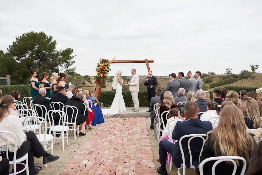Every moment of Emma and Darko’s ceremony at Warrawong Estate was filled with emotion and beauty. From the bride’s joyful tears to the exchanging of heartfelt vows, each gesture told a story of love. Guests watched with smiles and applause, capturing memories of their own. Framed by the sweeping valley views and rustic wedding arch, these images combine candid emotion with stunning landscapes.